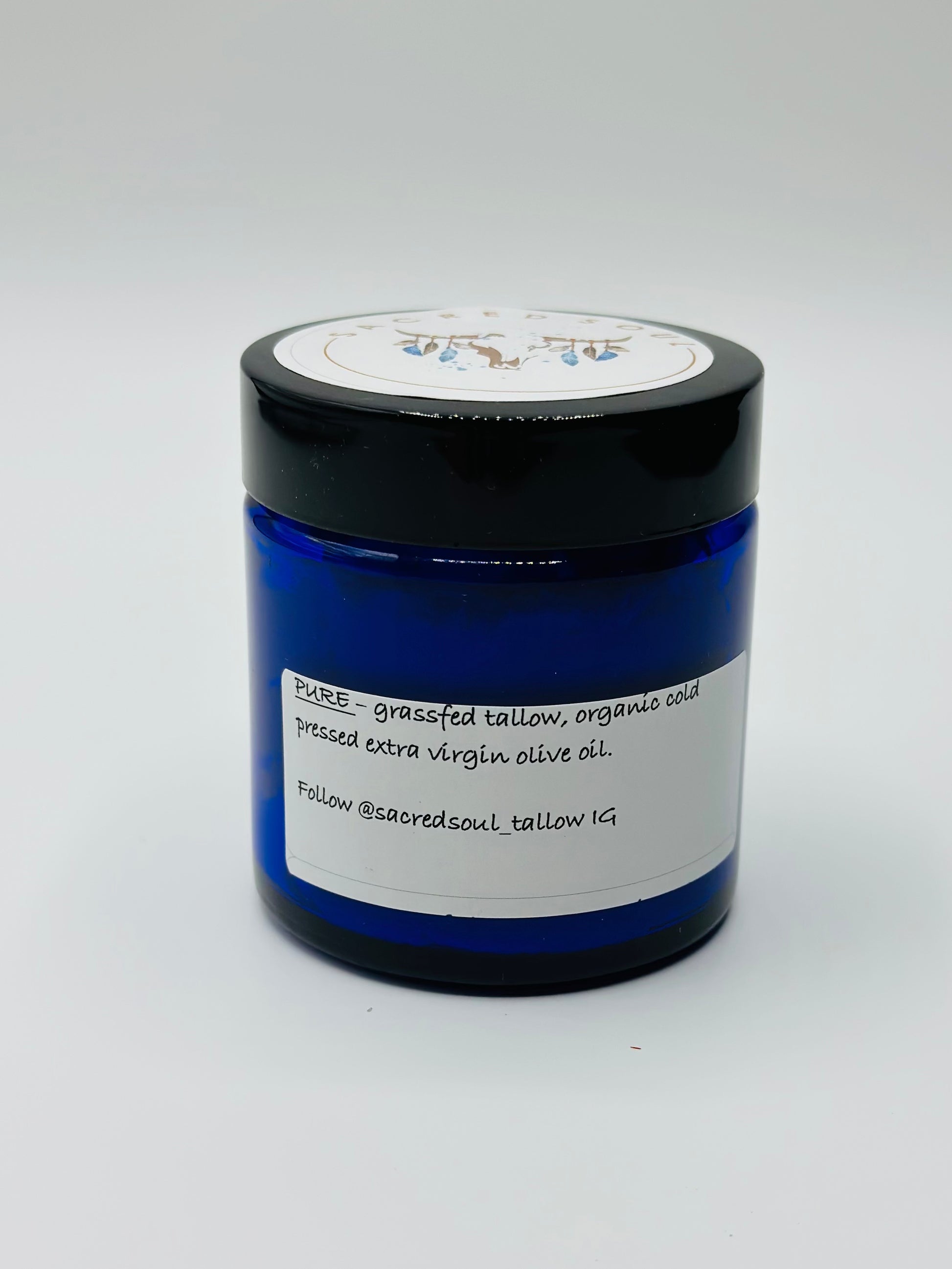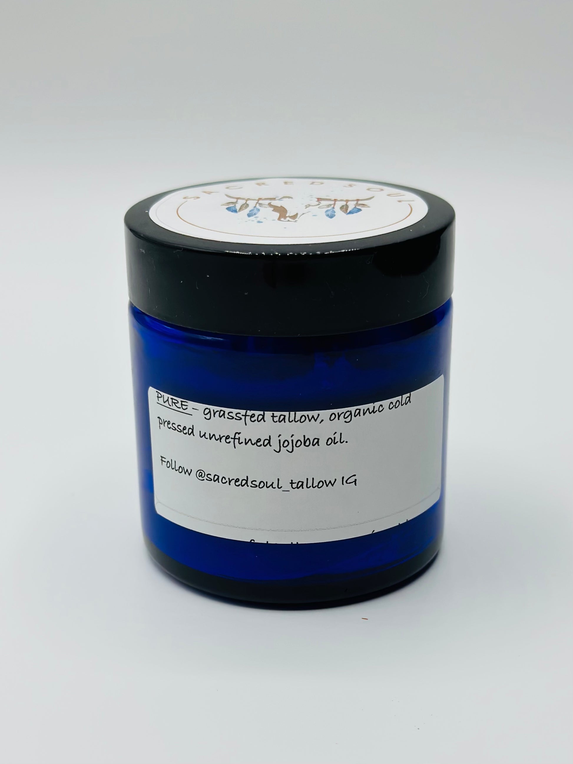 Sumptuous grass fed, grass finished beef suet tallow is combined with small batch cold pressed organic olive oil, or cold pressed hexane free jojoba oil to make the most perfect whipped cream.